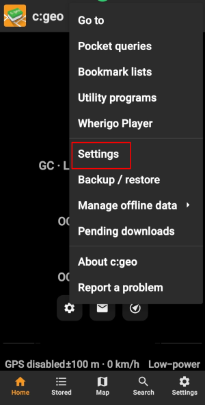 | Android browser | Het is niet (meer) nodig om c:geo te laten doen alsof het programma een browser is. Deze optie is niet meer beschikbaar. |